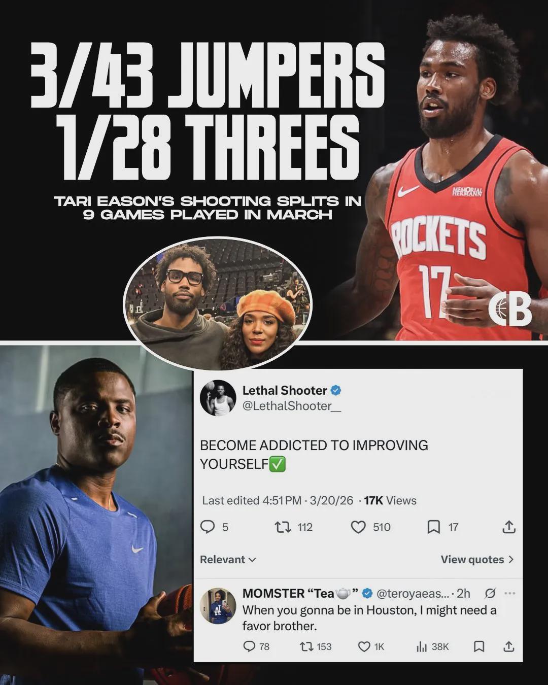 如今伊森赛季三分命中率已经跌至37.2%,仅排联盟第78位。火箭还剩13场常规赛,按照这个趋势,伊森的三分命中率还要继续下滑。伊森的妈妈在网上给一个知名投篮训练师留言:“你什么时候来休斯顿?我可能需要你帮个忙。”